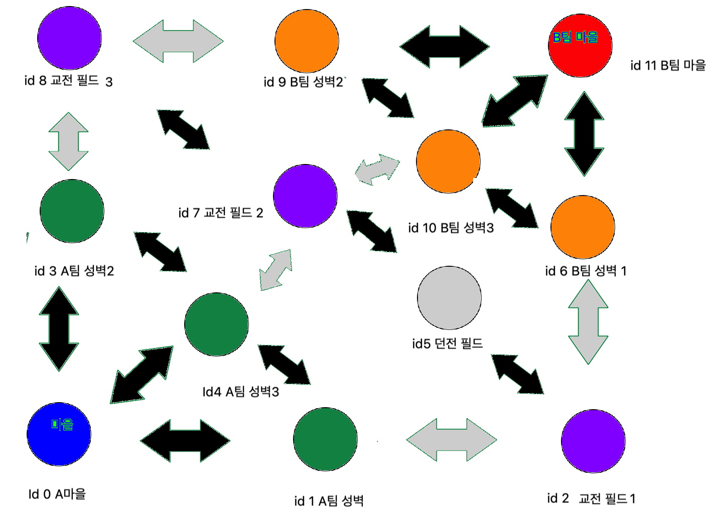 key 3 : value A-1 는 A팀 1번 성벽을 의미