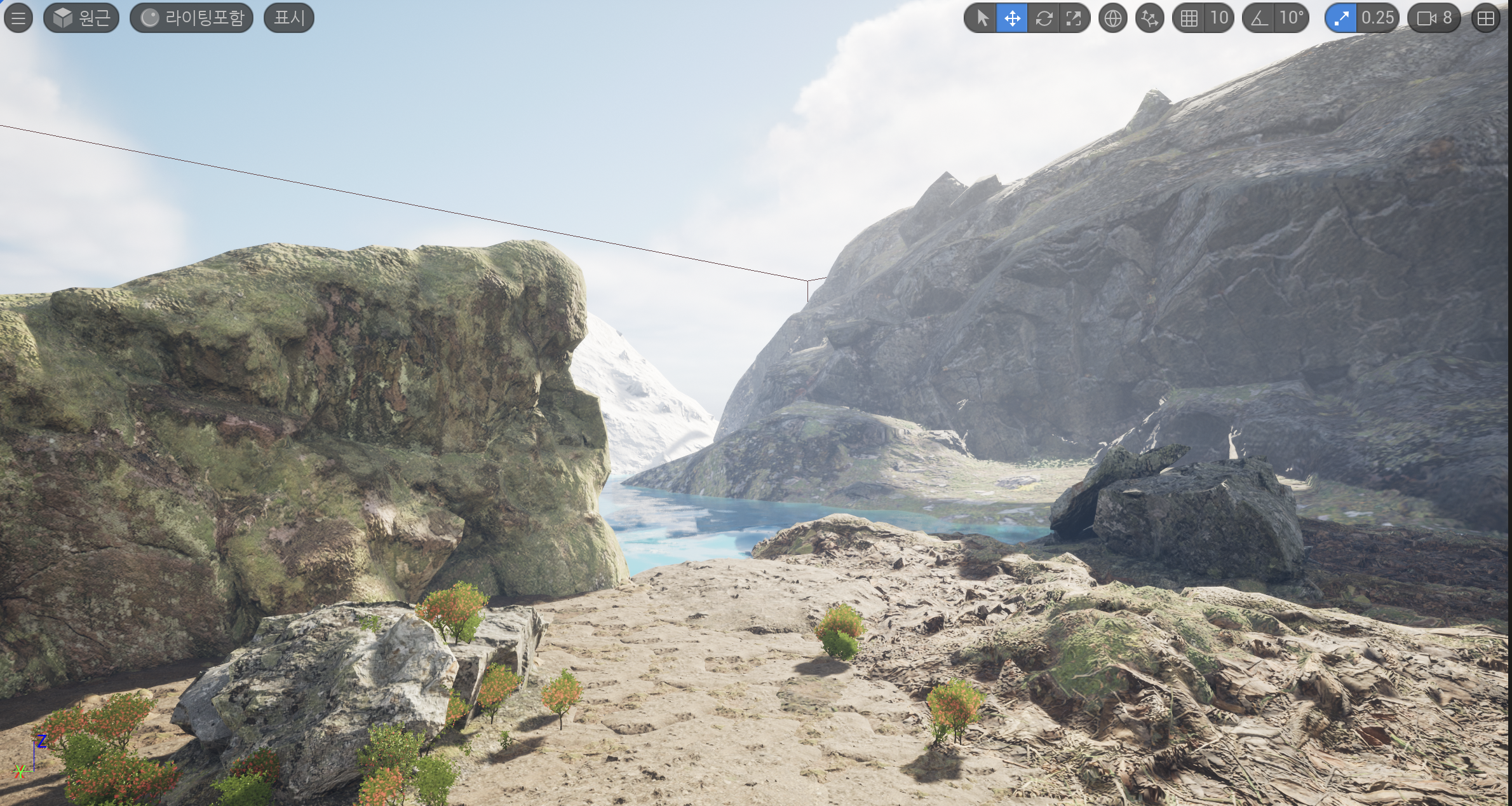 랜드 스케이프가 아닌 자연스러운 환경을 목표로 퀵셀 브릿지로 레벨 디자인을 진행했다.