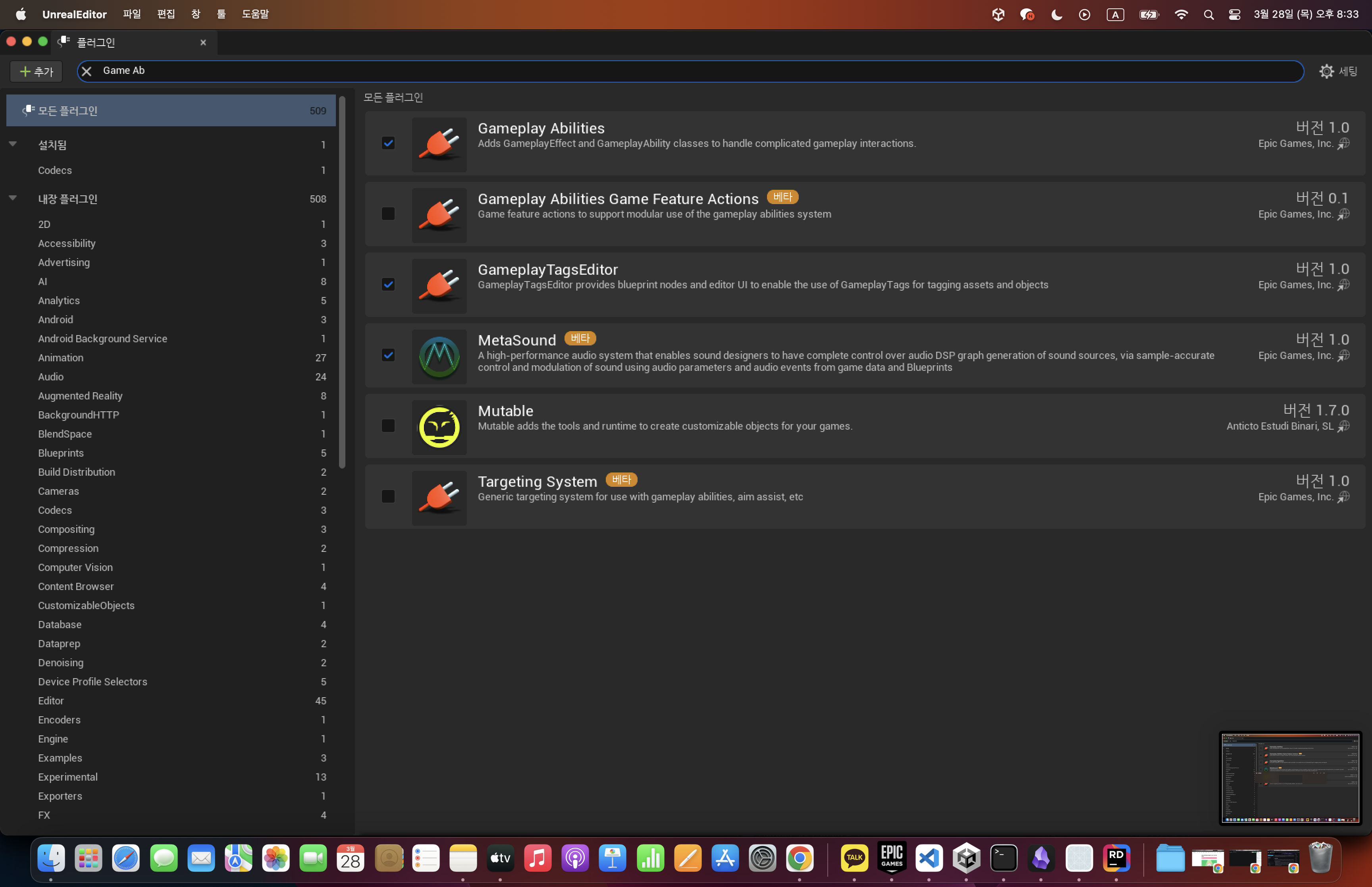개발에 임할 수 있도록 언리얼에서 지원하는 플러그인을 의미한다.