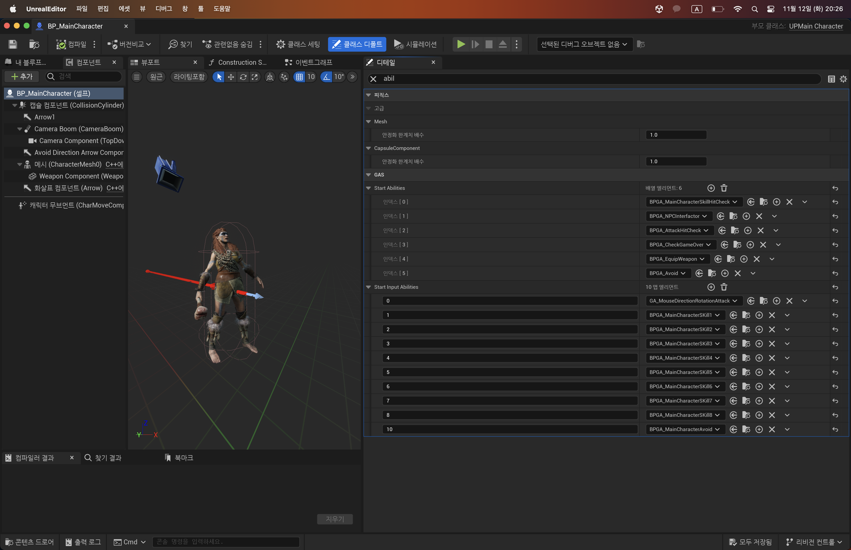 플레이어의 스킬은 앞서 말한것처럼 언리얼에서 지원하는 GameAbilitySystem을 적극 활용하여 구현했습니다.