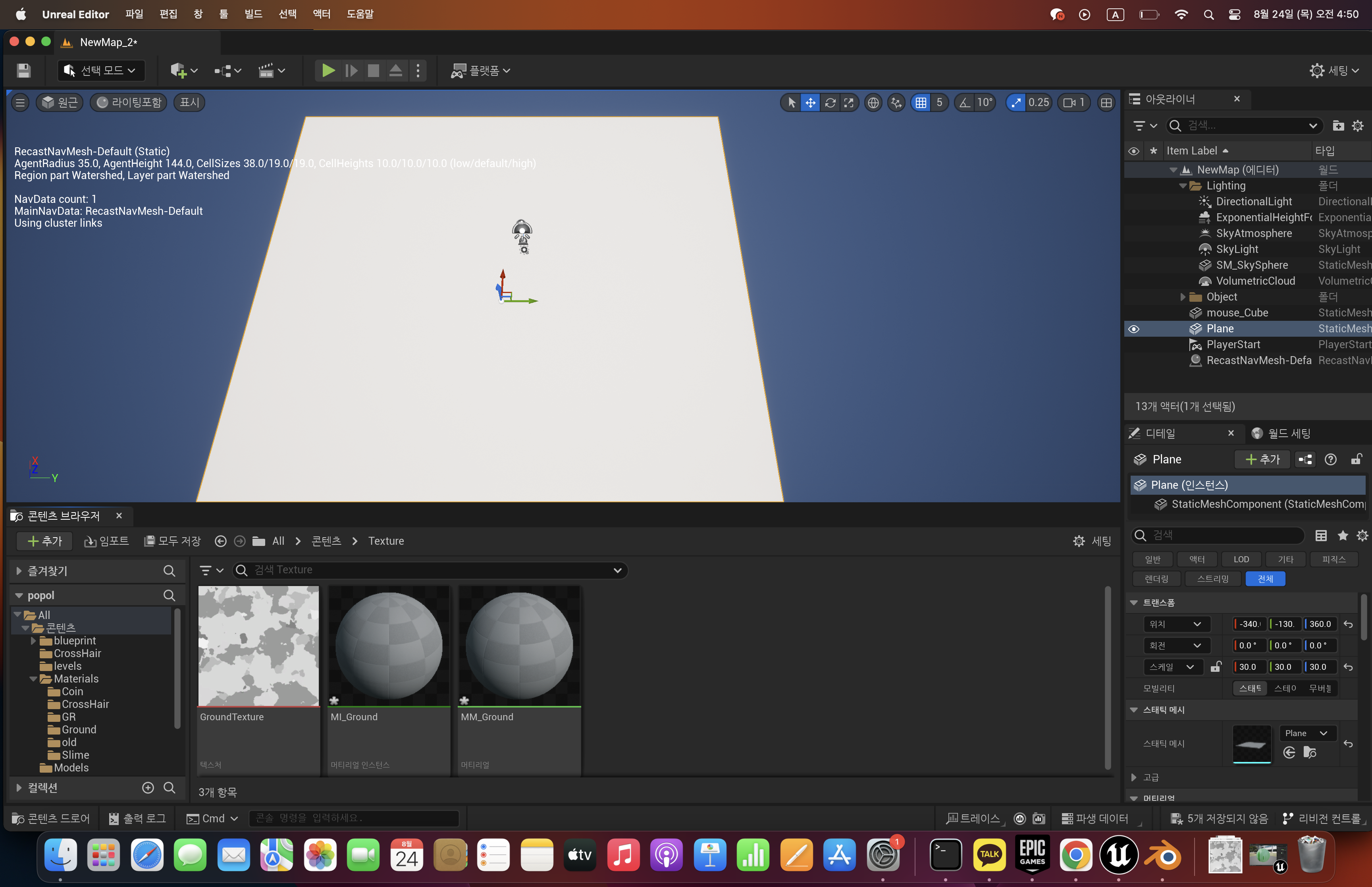 이번편은 전편에 블랜더를 이용해서 만든 ground텍스처를 이용하여 언리얼5기준으로 바닥 배치해볼 계획입니다.