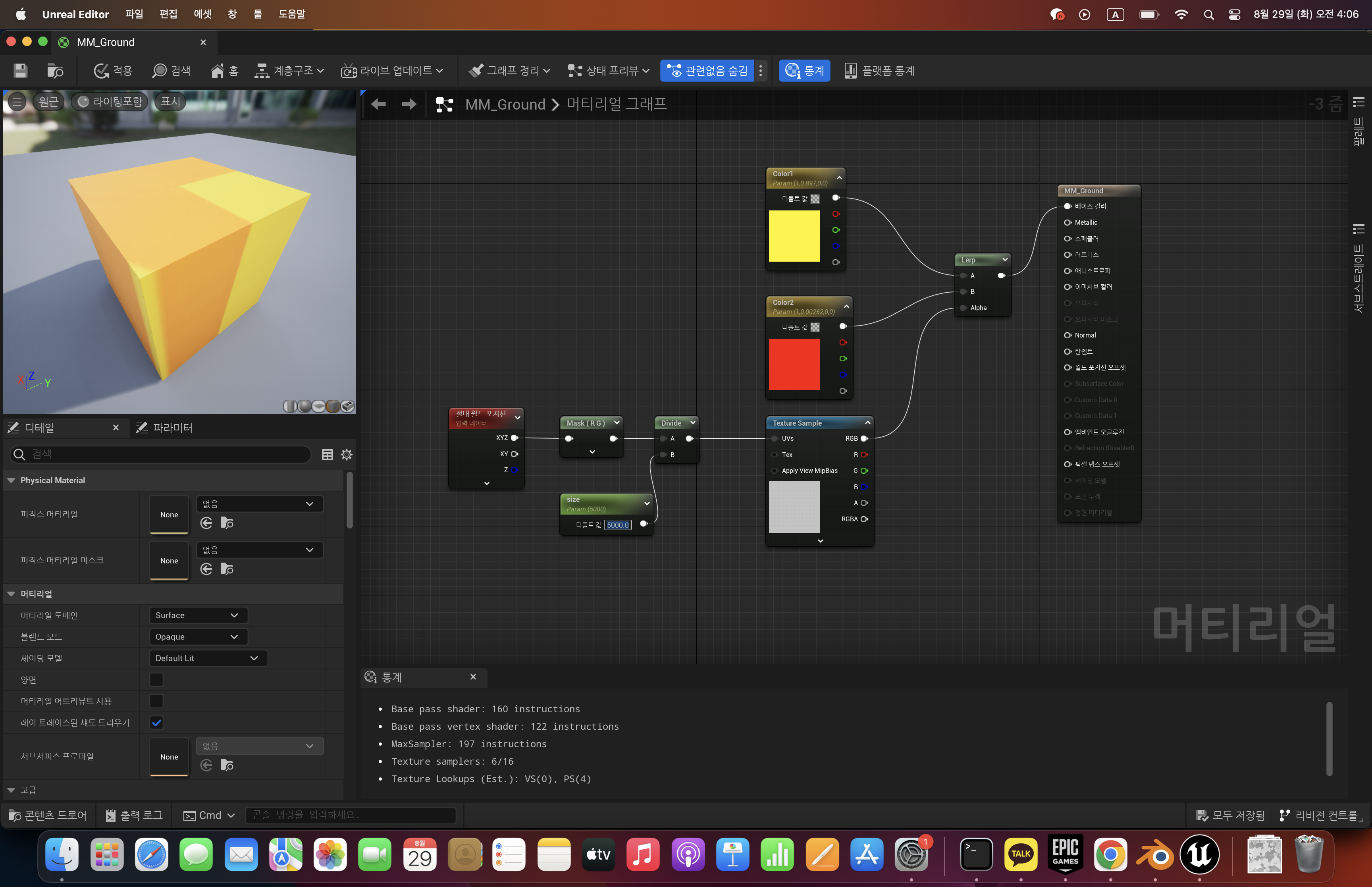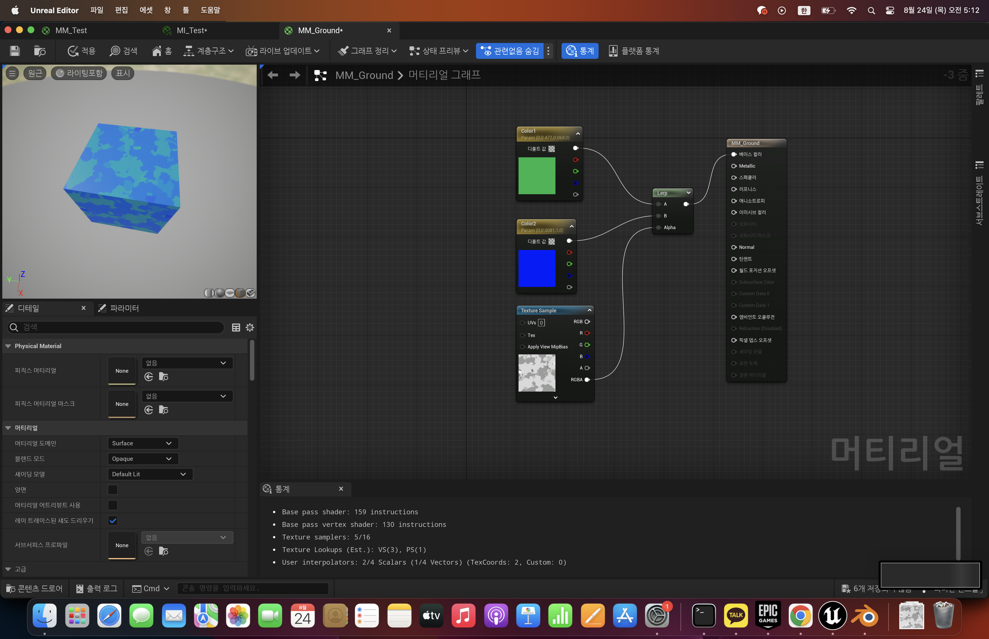 그리고 alpha를 ground텍스처의 컬러값으로 이어줬기때문에 단색이 아닌 ground의 질감으로 출력됩니다.