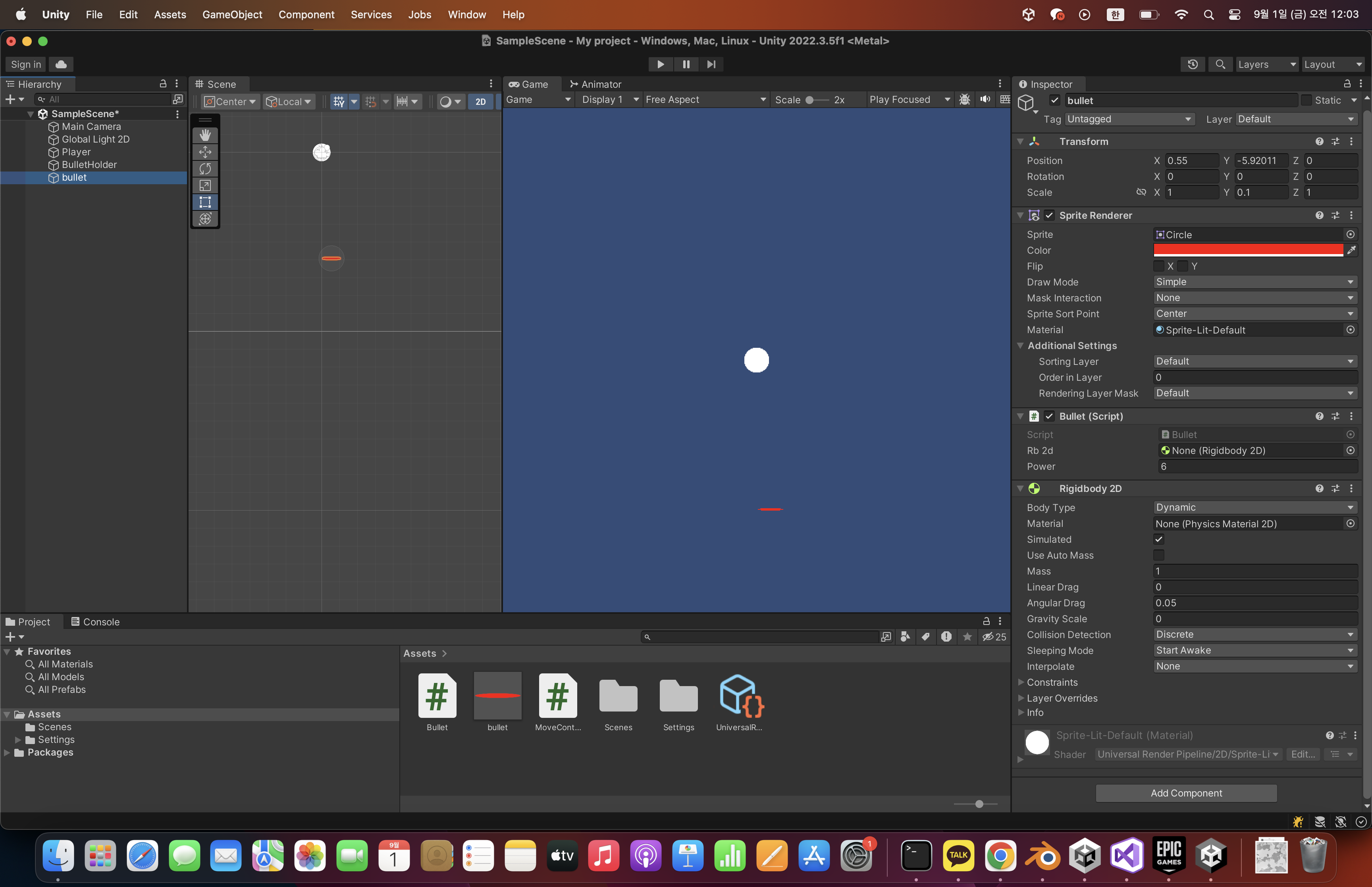 4. 신규 스크립트 bullet을 만들고 컴포넌트를 추가