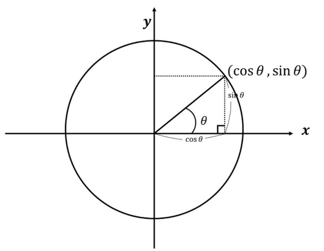 우리가 구하고자 하는건 원의 중심점이 (0,0)일 경우 중심점 부터의 좌표(cos,sin) P라는겁니다.